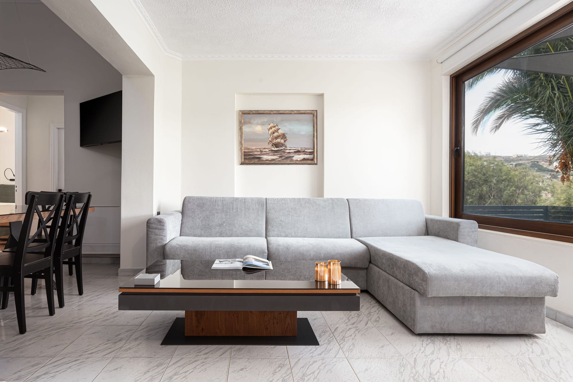 Enjoy the convenience of modern amenities, including free Wi-Fi, three Smart TVs, and Netflix for your entertainment needs. Relax on the villa's two large terraces, where the sound of the waves lulls you into serenity. Pamper yourself in the outdoor hot tub, a perfect spot to unwind as you gaze at the endless sea.